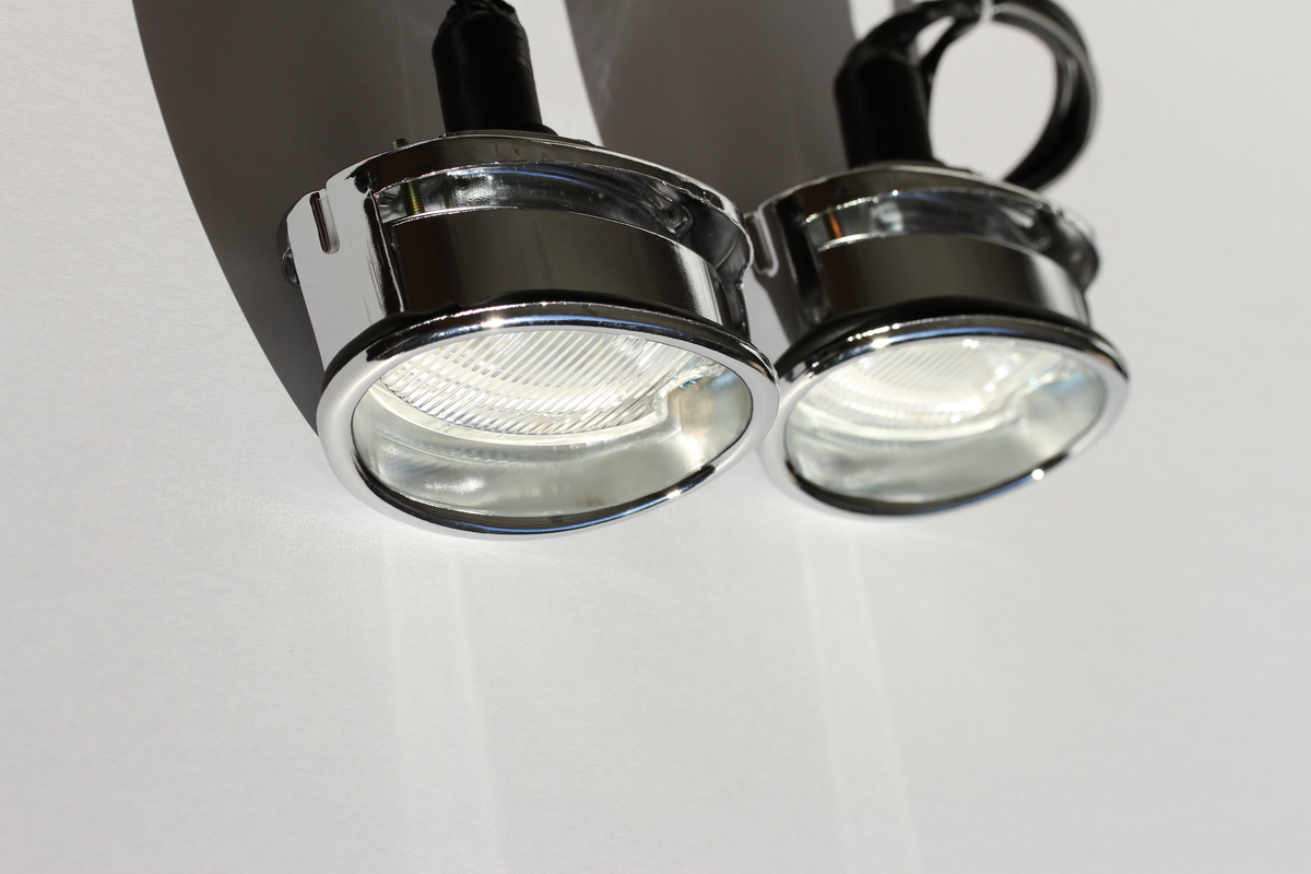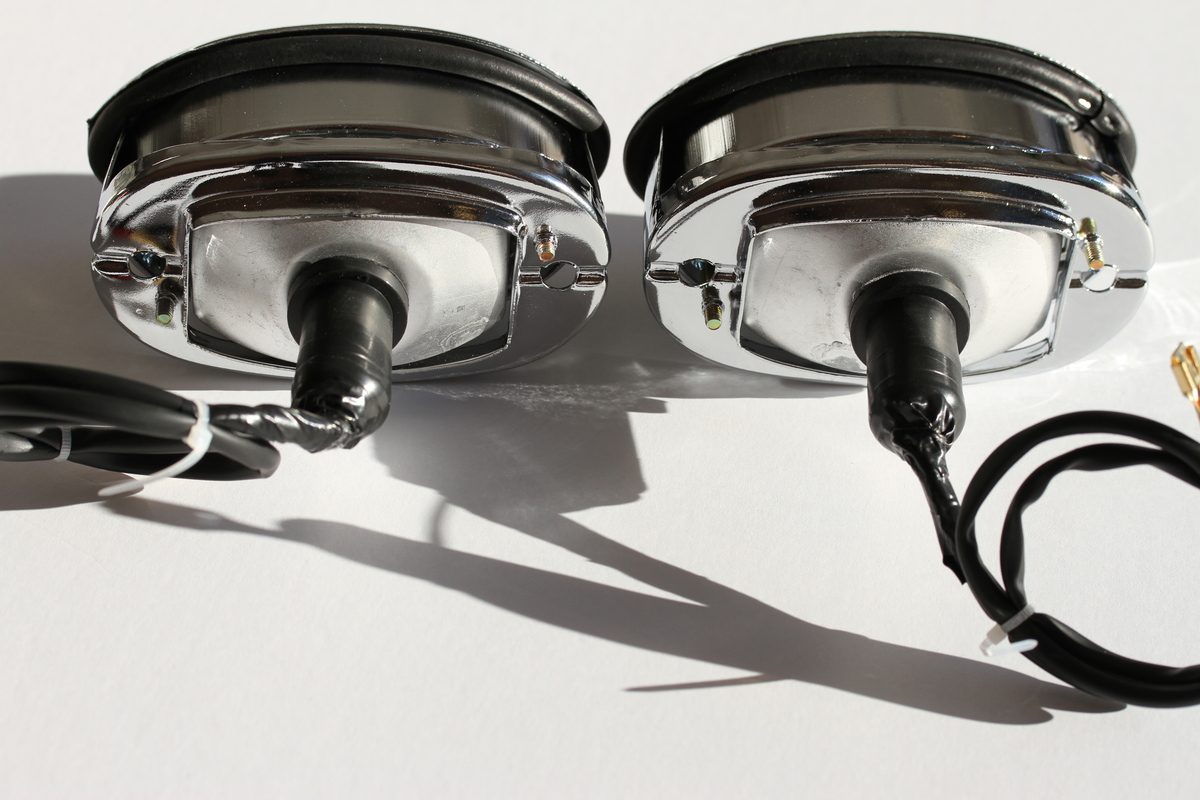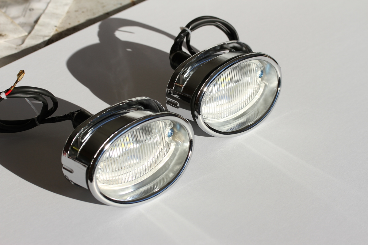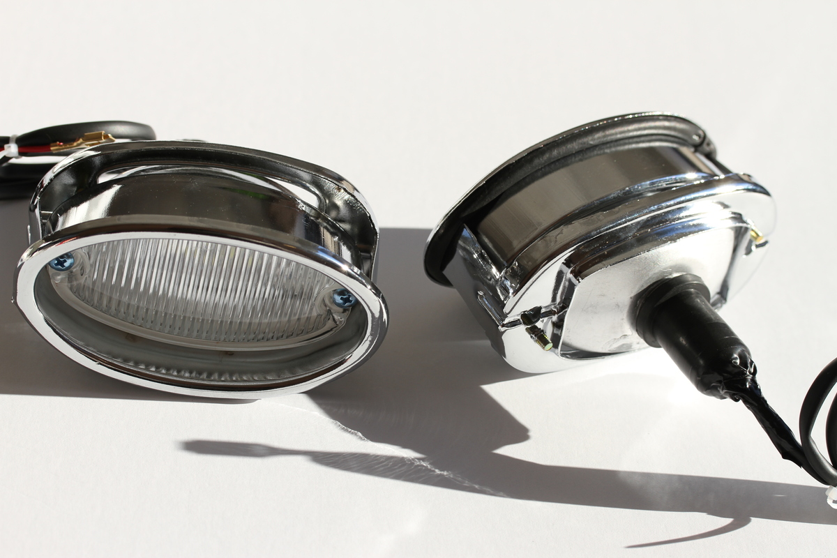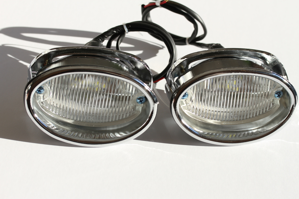 Reproduction back up light assemblies; Features glass lens chrome metal finish; Includes LED's that can be changed to an 1156 incandecent bulb; If using LED bulb it is recommended to use a flasher; Does not include neutral or back-up swiches or clips; Listing is for two assemblies
