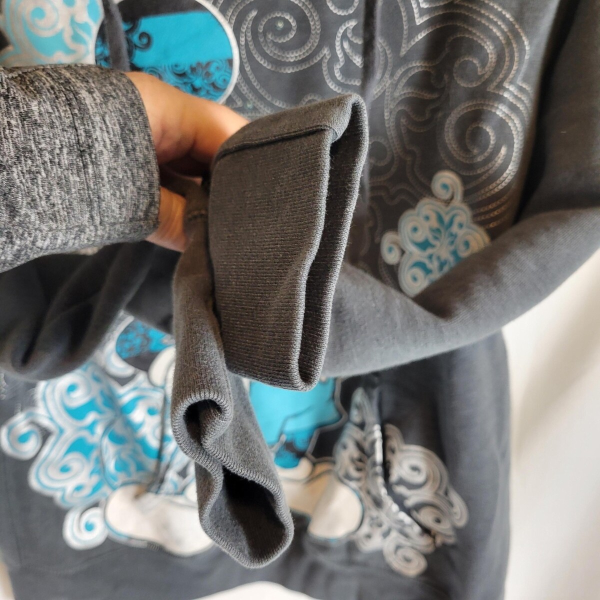 Disney Parks Mickey Mouse Hoodie Adult XL Gray Rhinestone Studded Paisley
