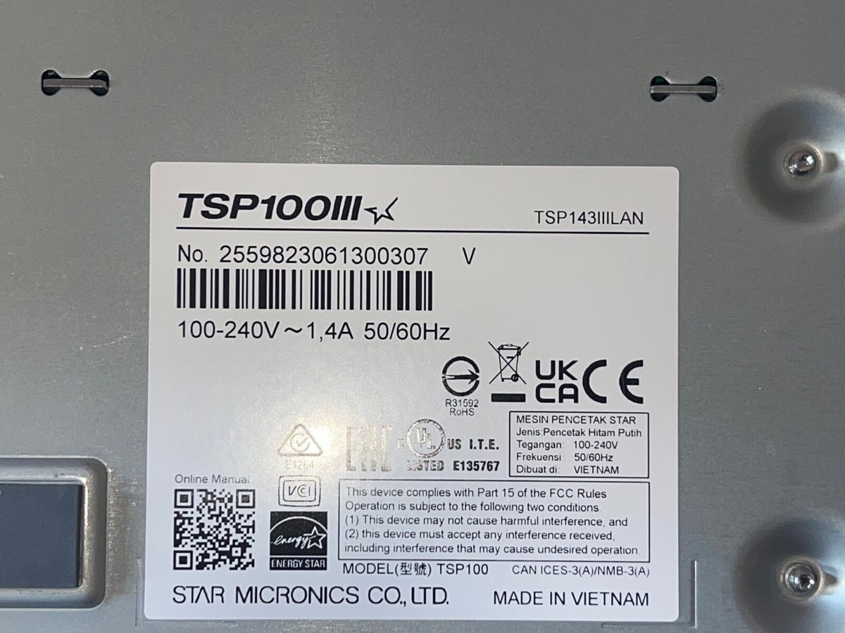 sale Item NEW OPEN BOX Star TSP100 Thermal POS Receipt Printer Ethernet TSP143IIILAN with Power Cord and Ethernet cable