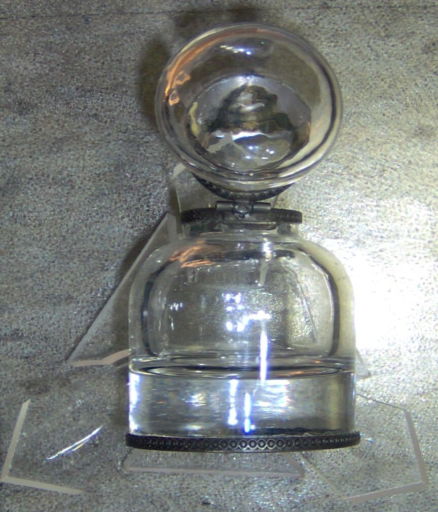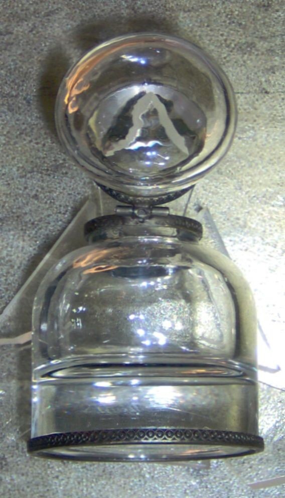Vintage Clear Glass Ink Well 3.5" Tall w/ Hinged Glass Lid Heavy 10 oz