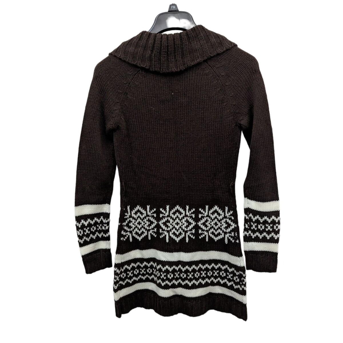 Vintage Y2K Wet Seal Fair Isle Shawl Collar Long Cardigan Dark Brown White XS
