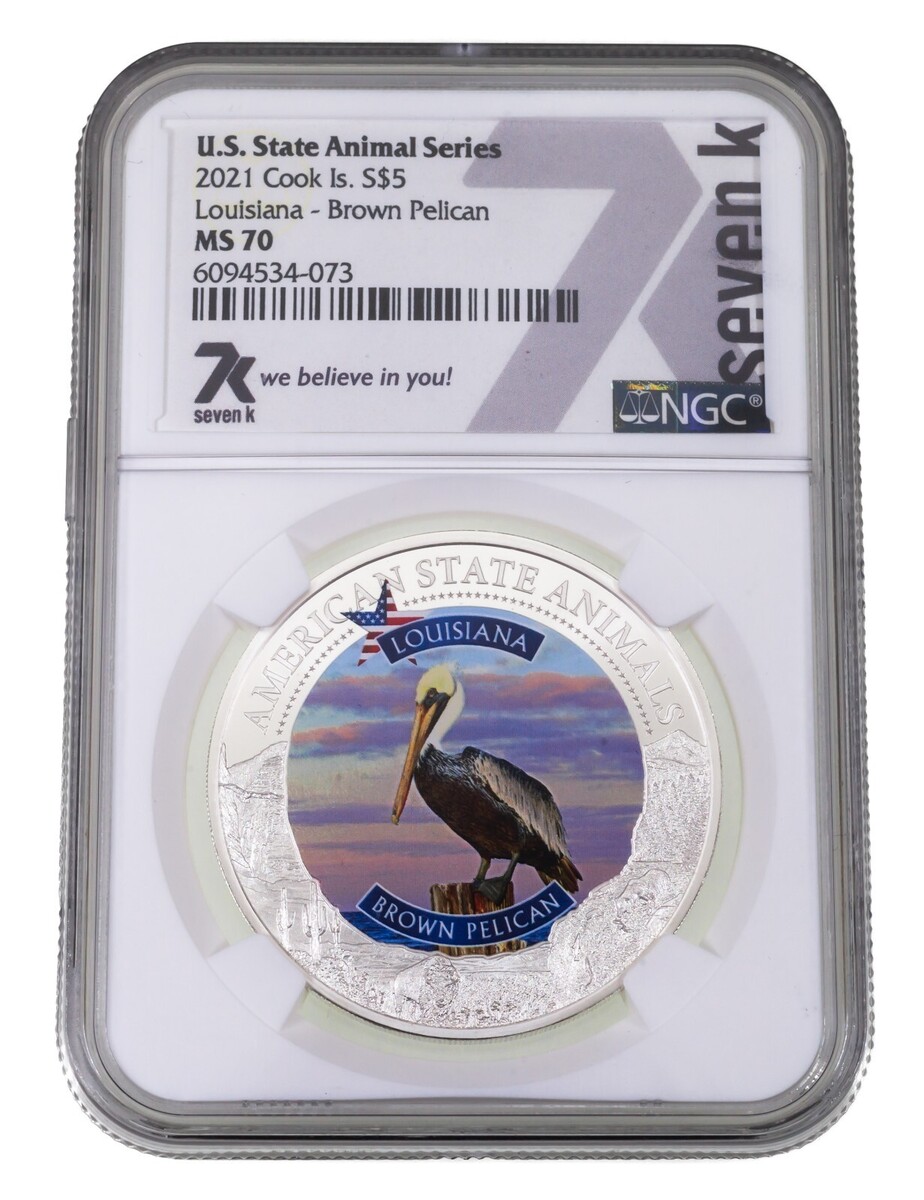 2021 Cook Islands S$5 1 Oz. US Animal Louisiana Graded by NGC as MS70
