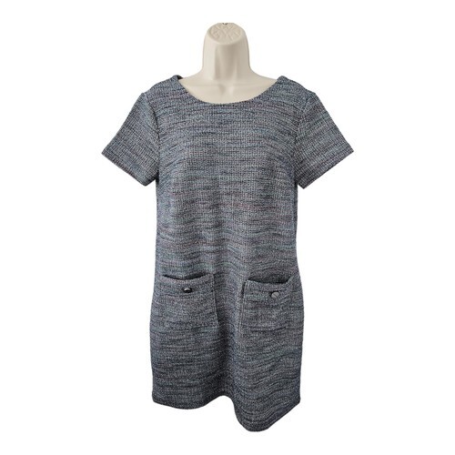 Loft Women's Tweed Sheath Dress Size 6 Blue Short Sleeve Boat Neck Church