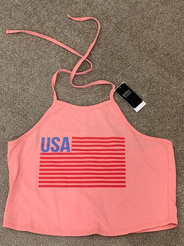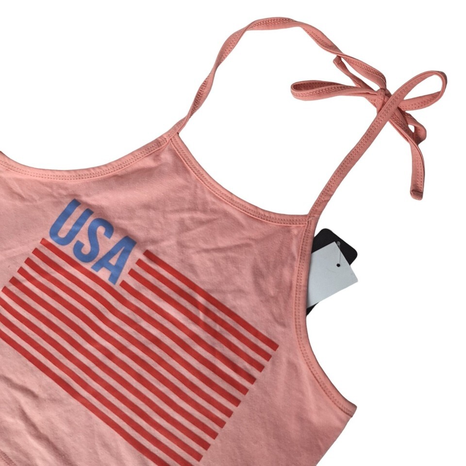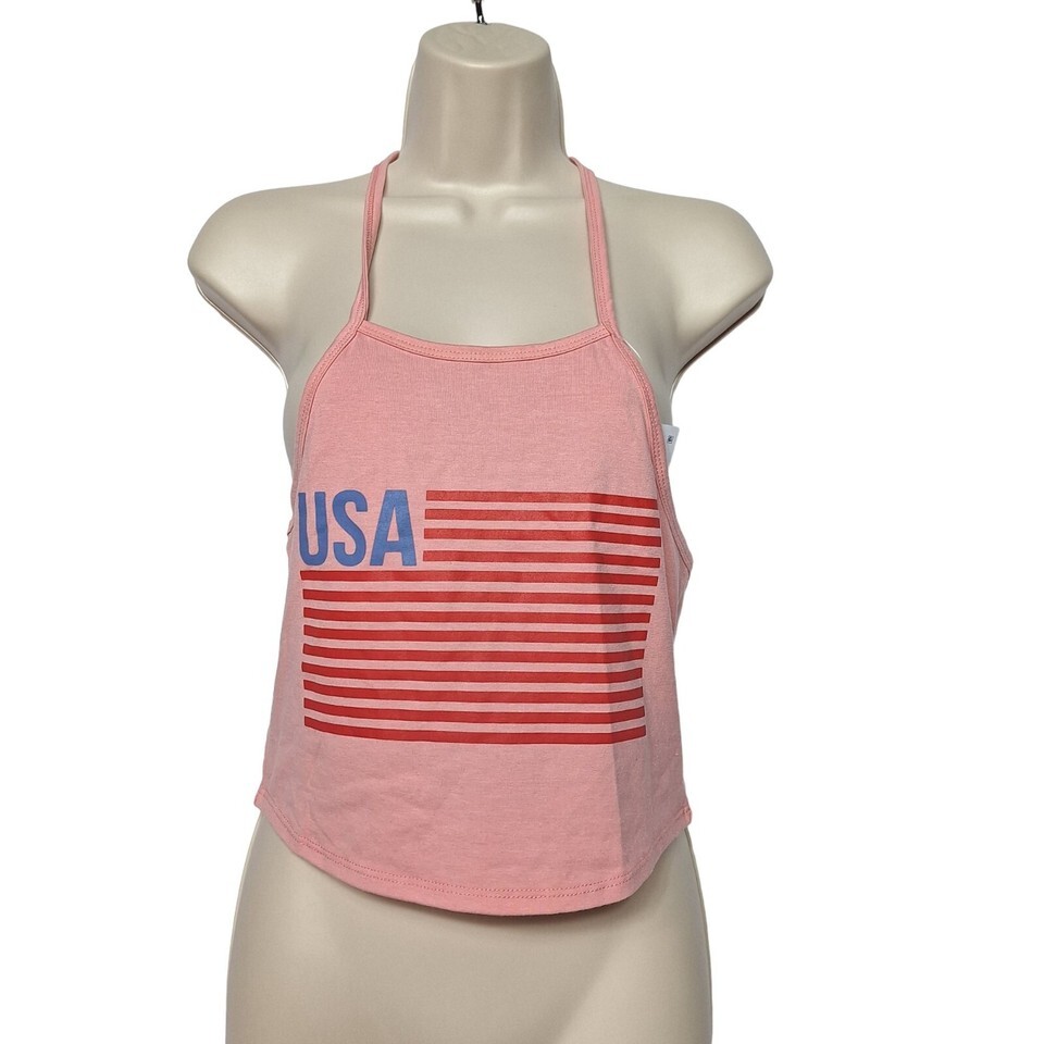 Isaac Morris Women's Halter Tank Top Size Small Coral 4th Of July USA Flag Cropp