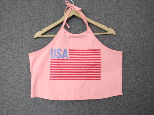 Isaac Morris Women's Halter Tank Top Size Small Coral 4th Of July USA Flag Cropped