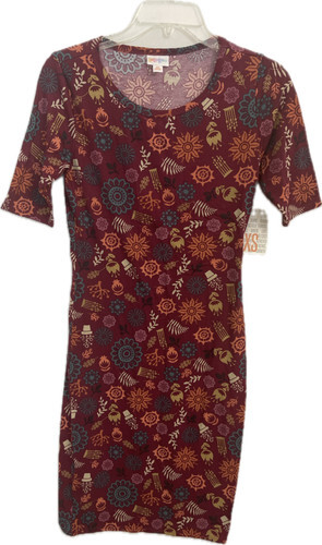 Lularoe Womens Julia 1/2 Sleeve Bodycon Dress Size XS Paisley Green Red