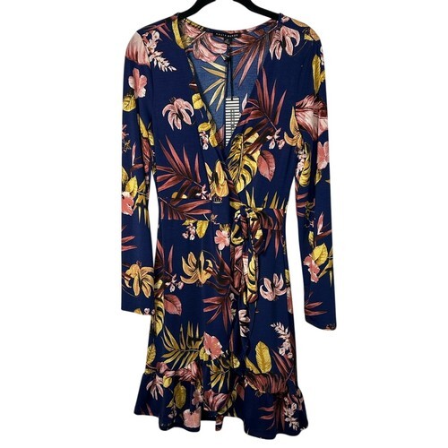 Haute Monde Sheath Dress Medium Green Orange Floral Ruffles Short Sleeve