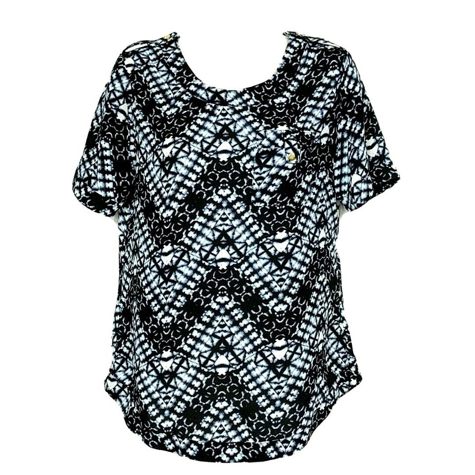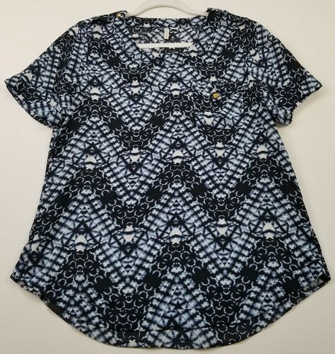 Cato Womens Blouse Top Size XS Black Blue White Geometric Chest Pocket