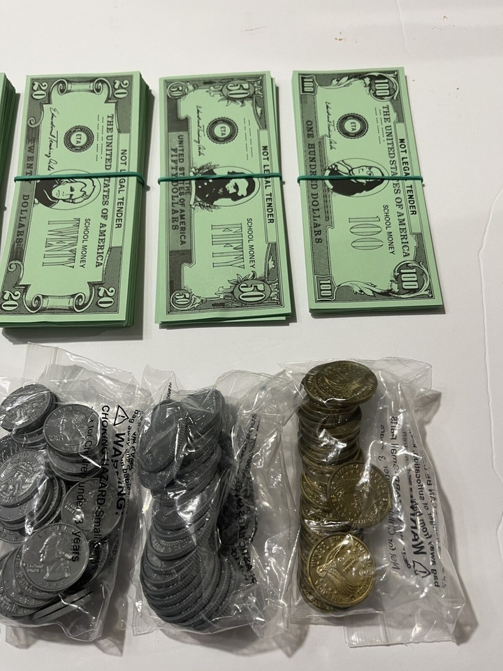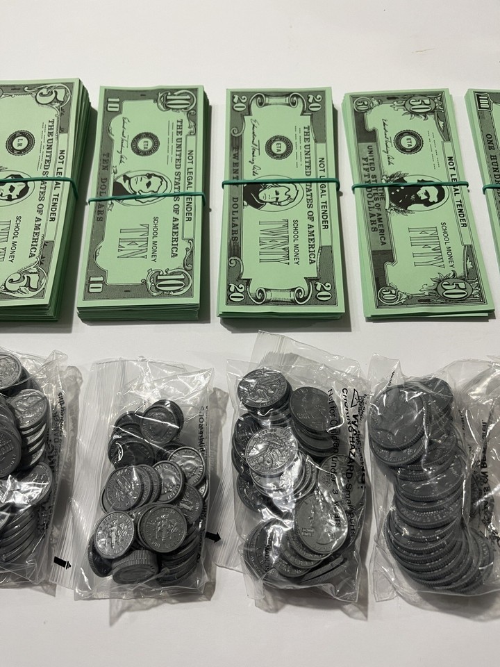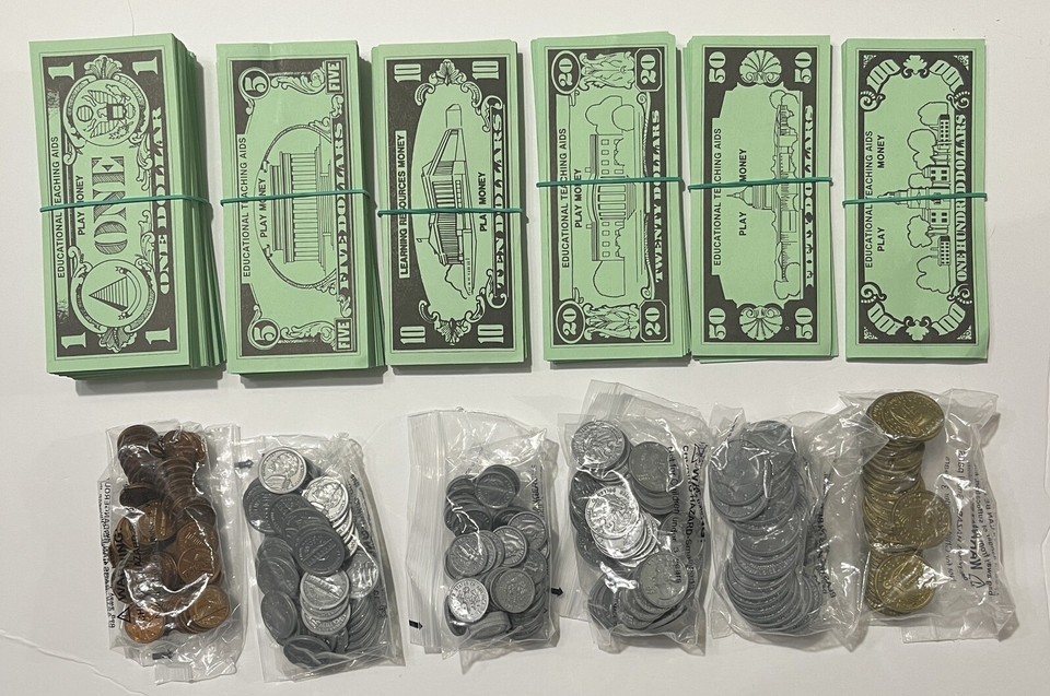 HUGE Lot Educational Teaching Aids 1, 5, 10, 20, 50, 100 Dollar Bills & Coins