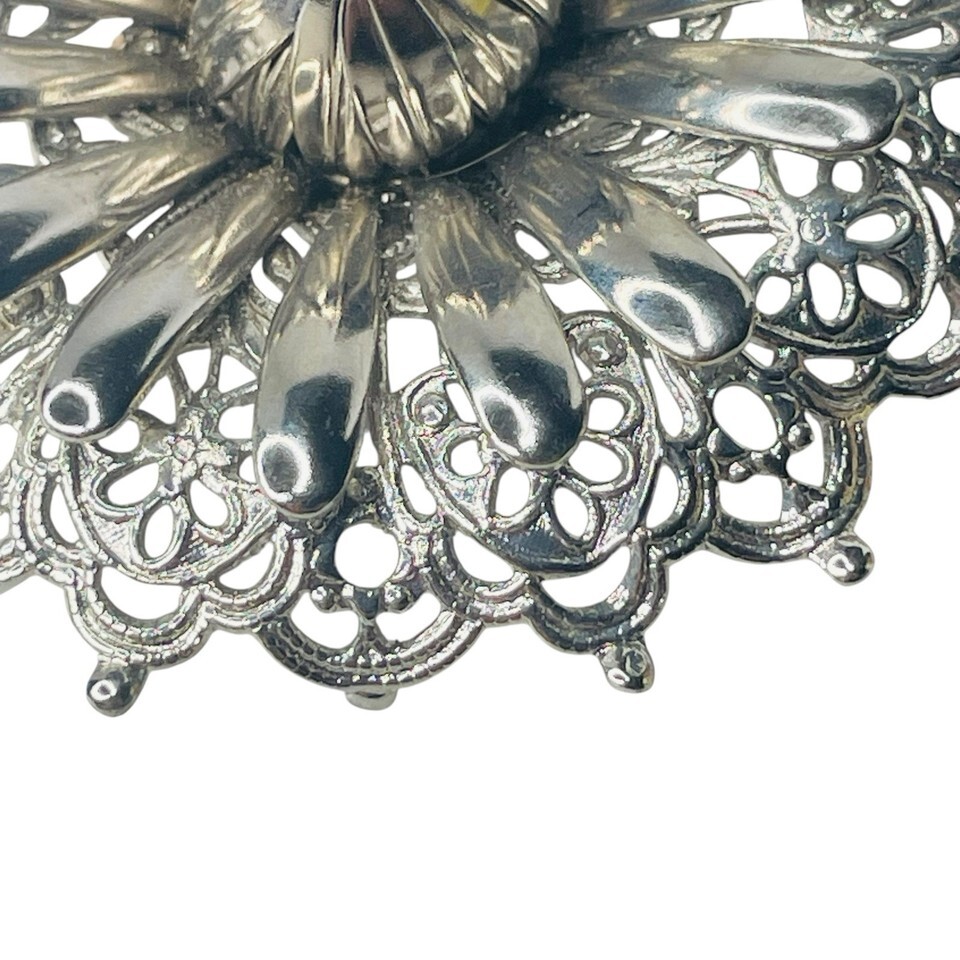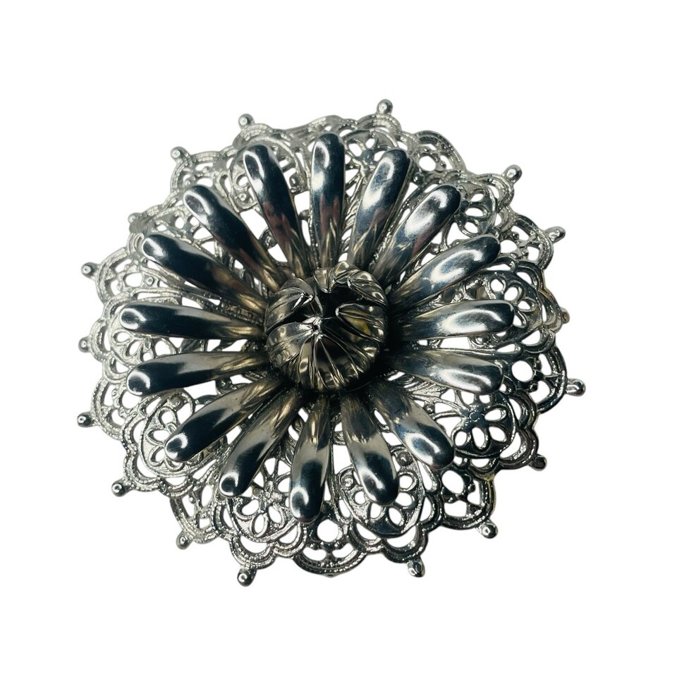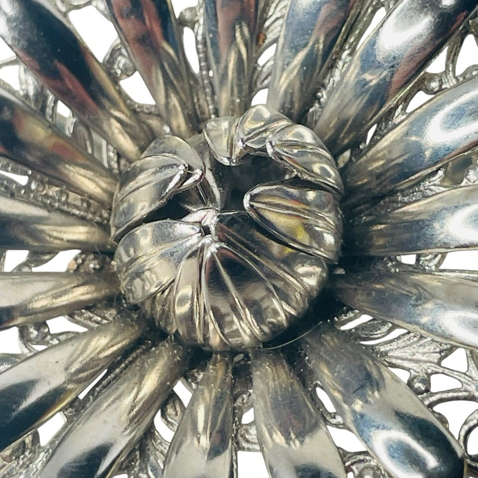 Vtg Large Silvertone Floral Chrysanthemum Filagree Brooch Pin