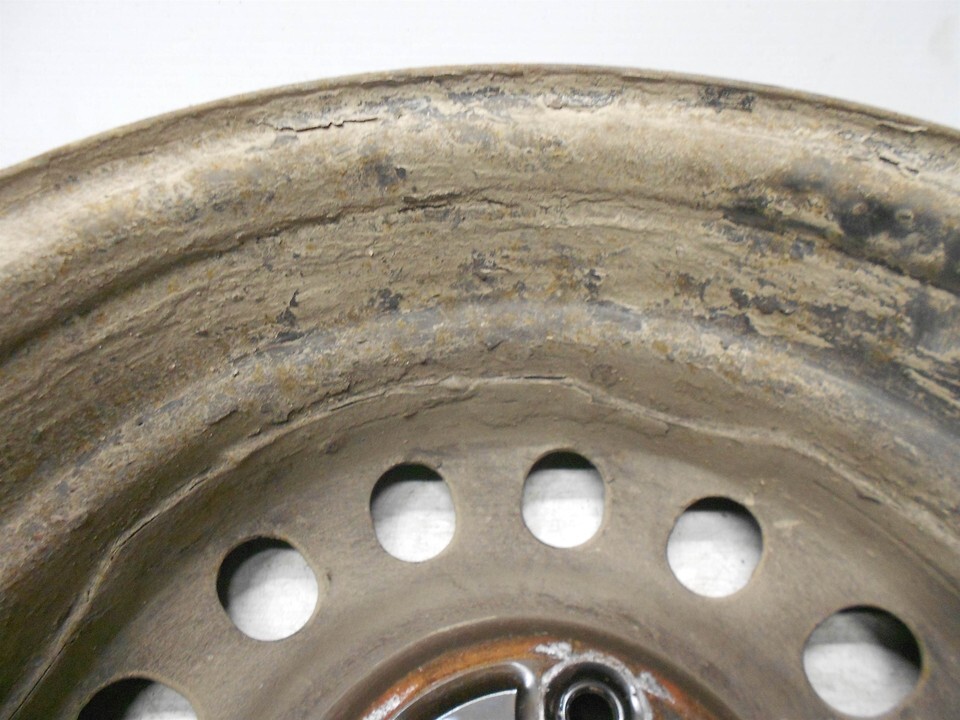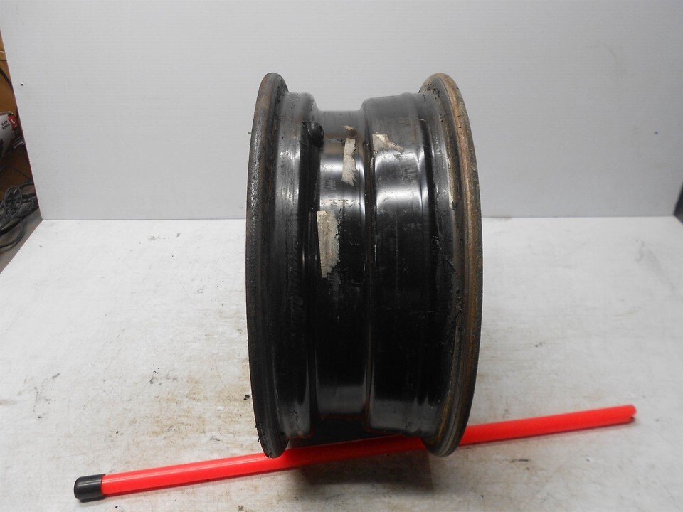 black steel wheel dirty with light rust. - If your part gets damaged during the delivery process or you think we have missed something please contact us and allow at least up to 2 business days for a reply.