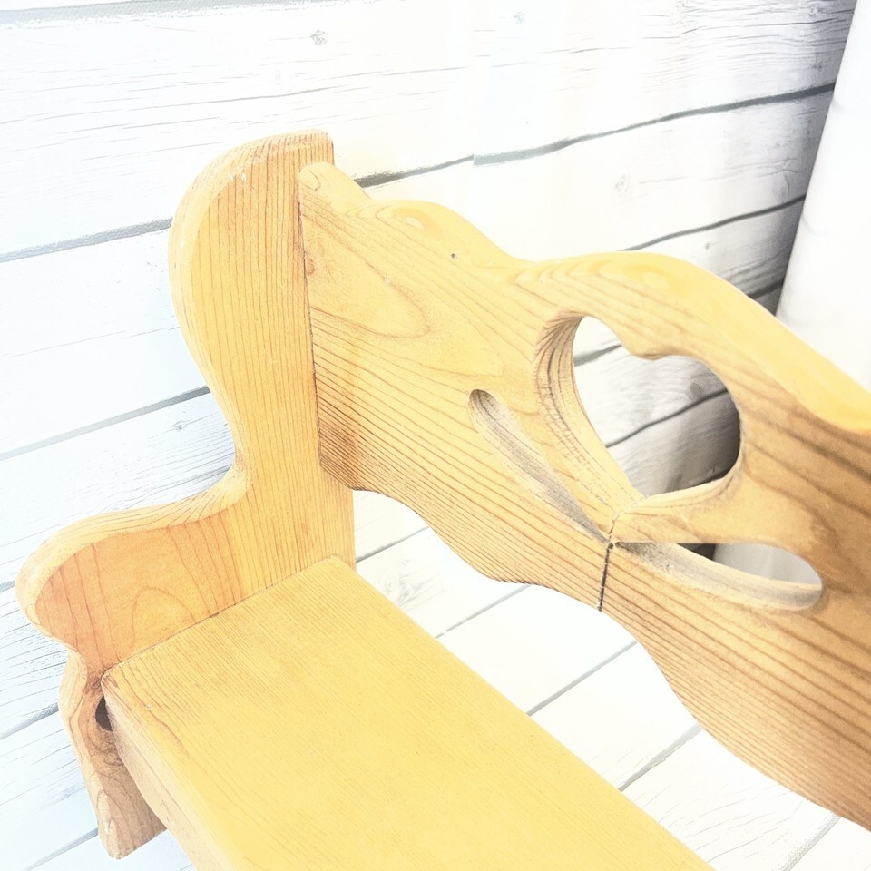 Vintage Hand Made Solid Wood Heart Country Farm Small Brown Bench
