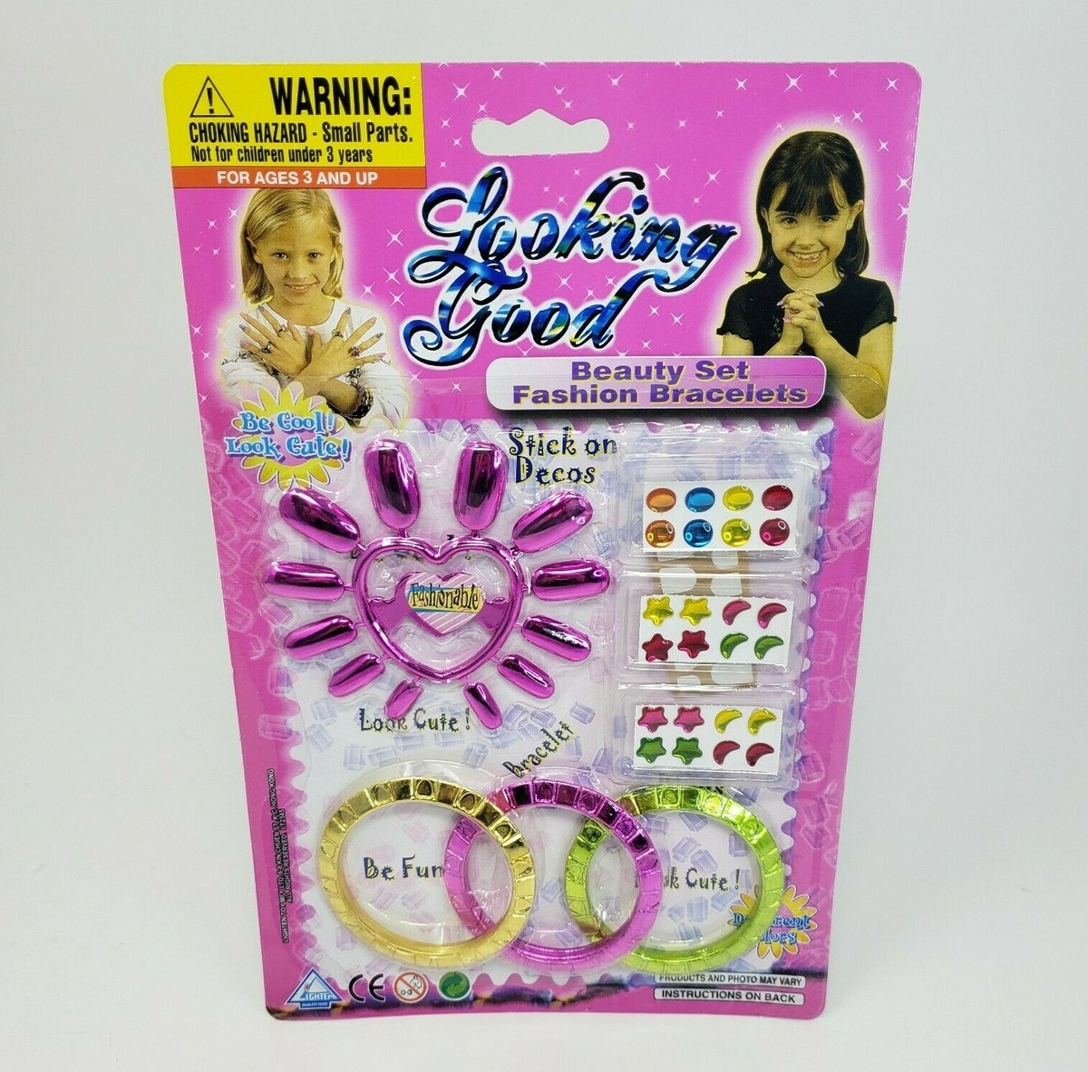 VINTAGE LIGHTEN LOOKING GOOD BEAUTY SET FASHION EARRINGS BRACELETS PINK NAILS