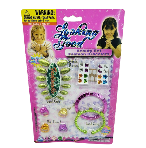 VINTAGE LIGHTEN LOOKING GOOD BEAUTY SET FASHION BRACELETS + RINGS + GREEN NAILS