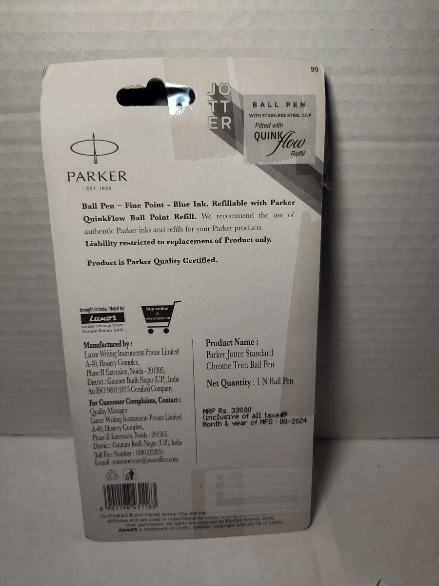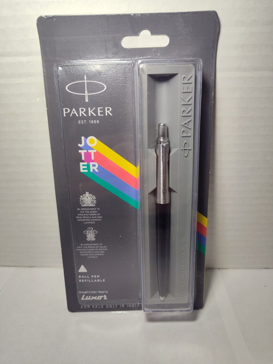 Parker Jotter Standard Chrome Trim Ball Pen Black Body Color Blue Ink