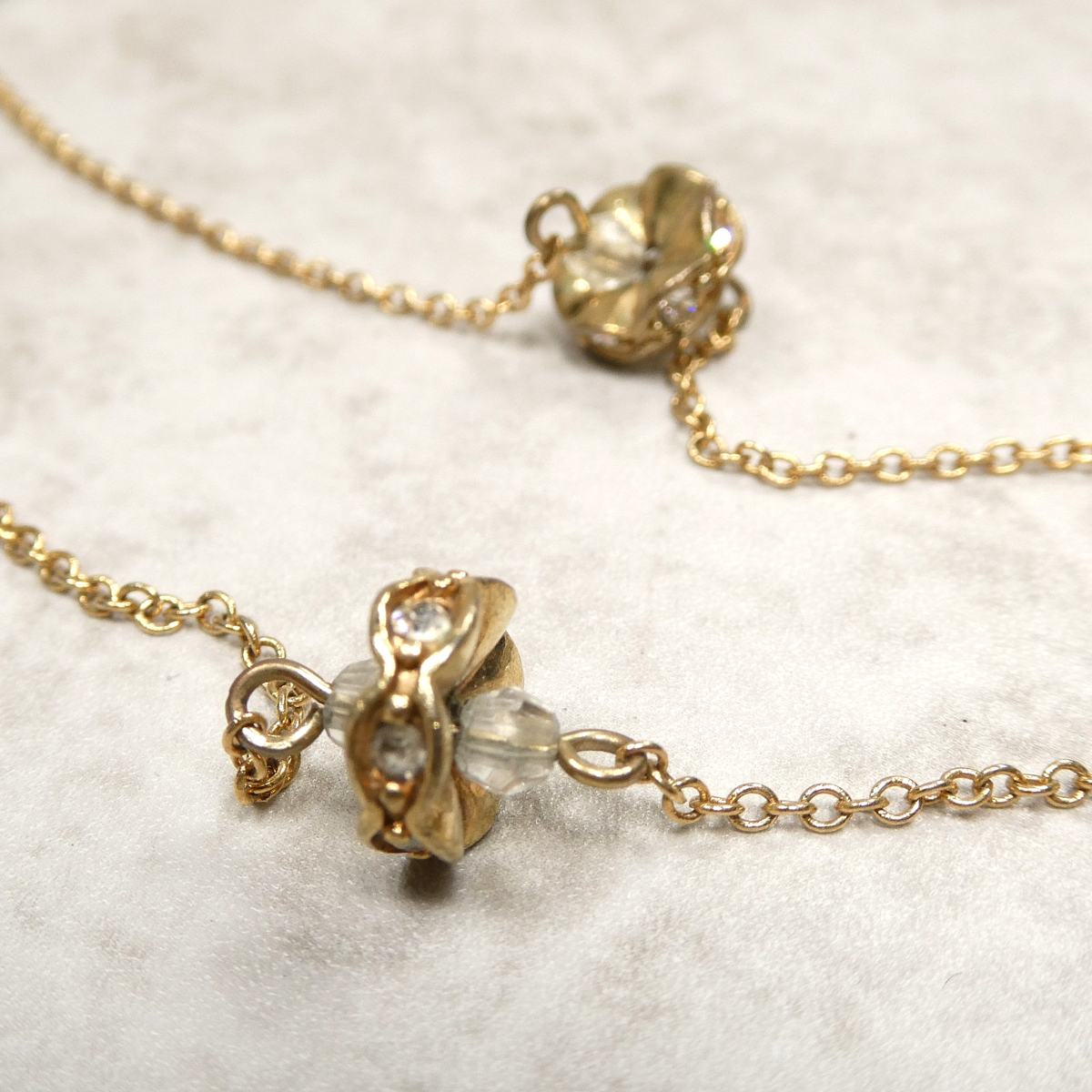J Crew Gold Rhinestone Clear Lucite Beaded 34" Single Strand Chain Necklace