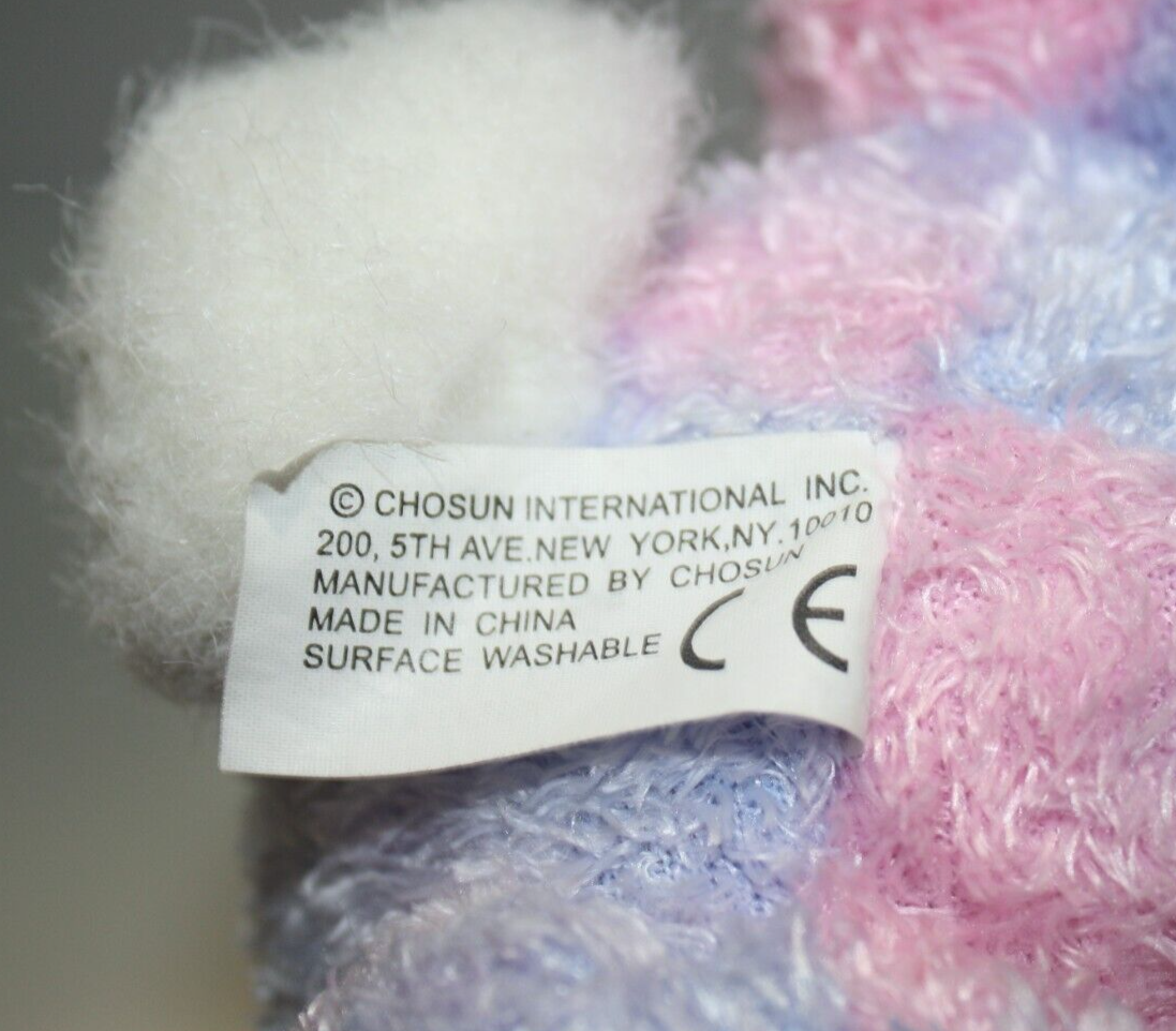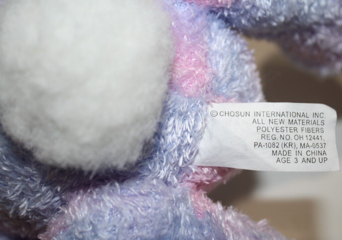Condition: Bunny is very cute and pretty pink and purple colors, Has wear from normal play/handling, White plush tail is Fuzzy, wears a sheer ribbon neck bow, Seam tag intact, Smoke-free environment.