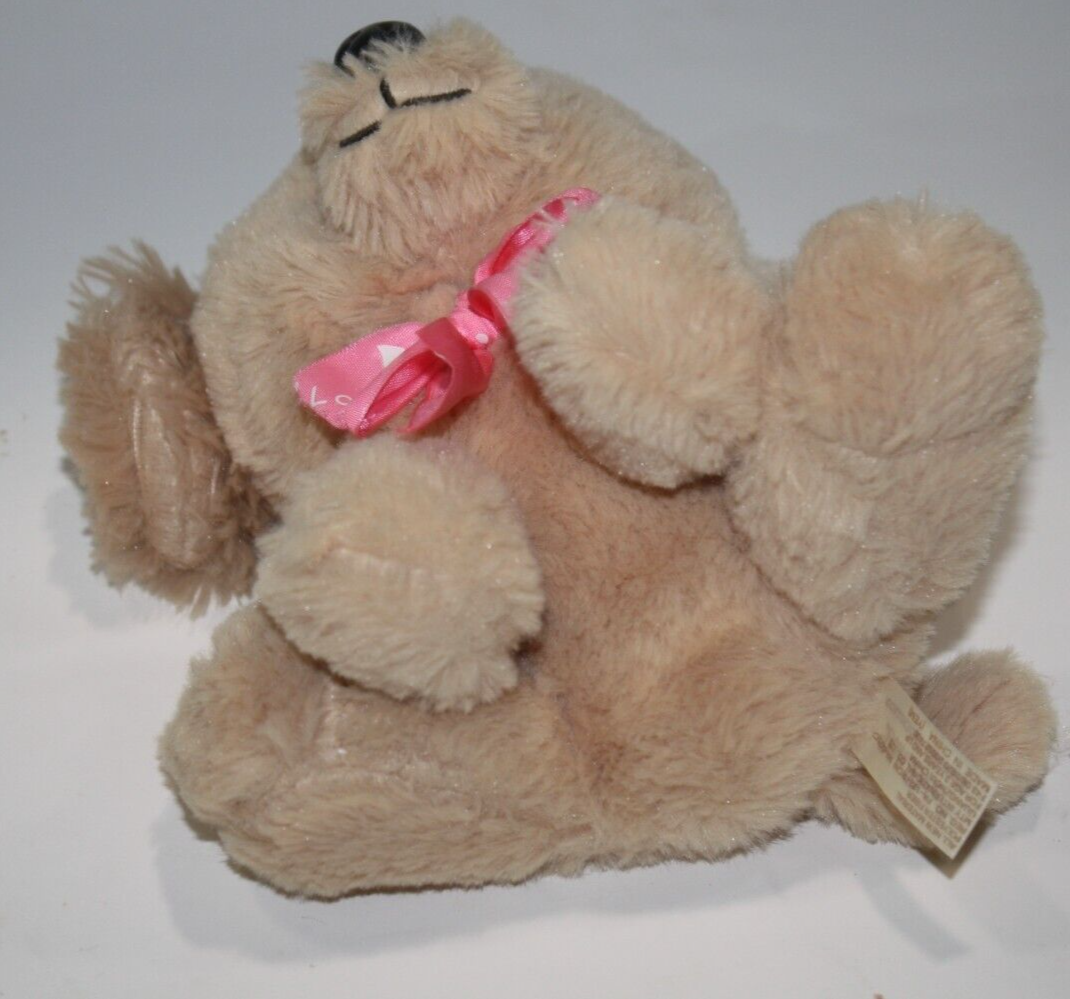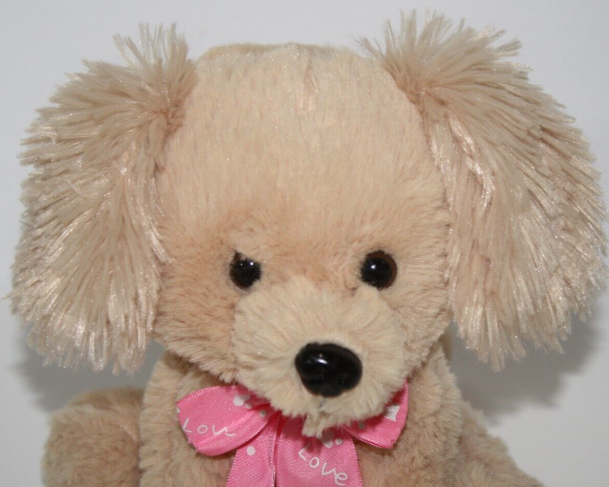 Dan Dee Valentines Dog Beige Plush Sits 7" Pink Love Bow Soft Toy Stuffed Animal