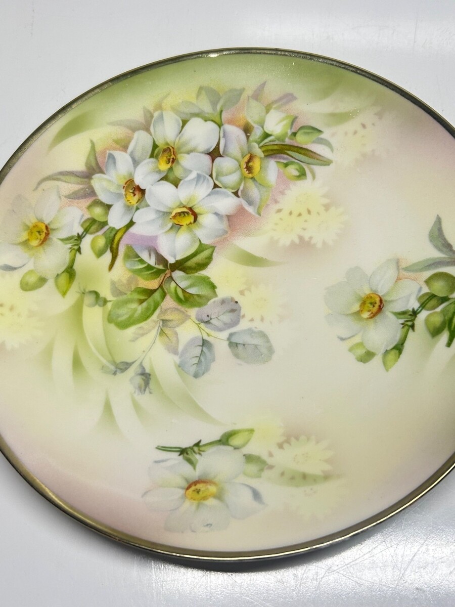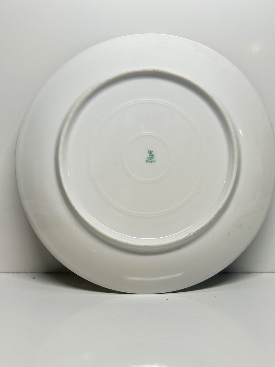 This 1920?s Erdmann Schlegelmilch porcelain plate showcases delicate floral motifs with hand-painted details and gold trim. A vintage collectible in fine condition.