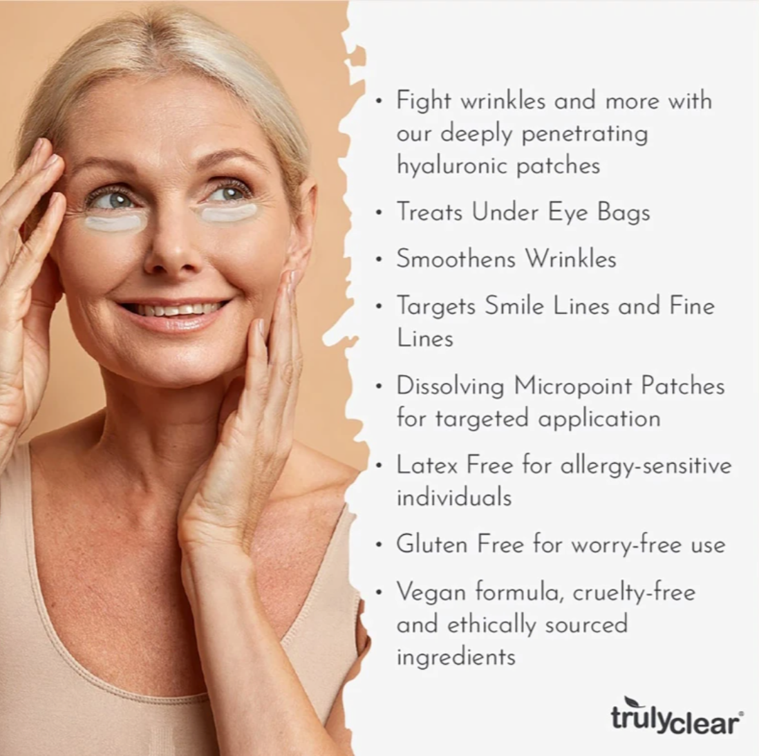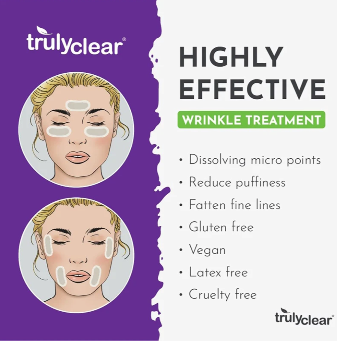 Truly Clear: Wrinkle Fighting Patches - 4 Patches - Hyaluronic Acid, Peptides Collagen for Youthful Skin, Fine-Line Targeted Skincare, Plant-Based