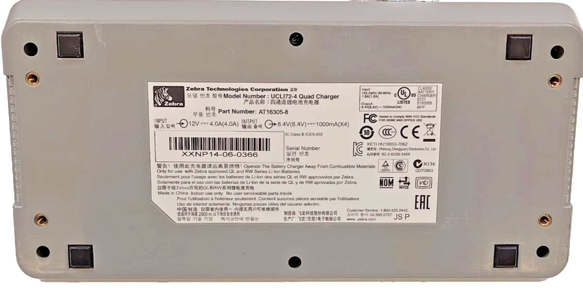 Zebra UCLI72-4 Quad Battery Charger for QLn320 , QLn420, ZQ520 Mobile Printers