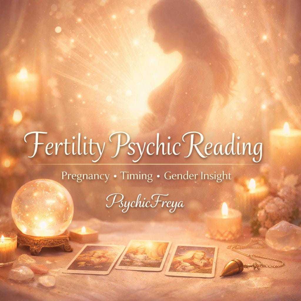 Using tarot cards alongside psychic and intuitive perception, I explore fertility energy, conception windows, emotional readiness, and symbolic indicators connected to pregnancy. Tarot is used as a guidance tool to interpret energetic patterns rather than medical outcomes, focusing on intuitive timing, alignment, and potential influences surrounding your journey.