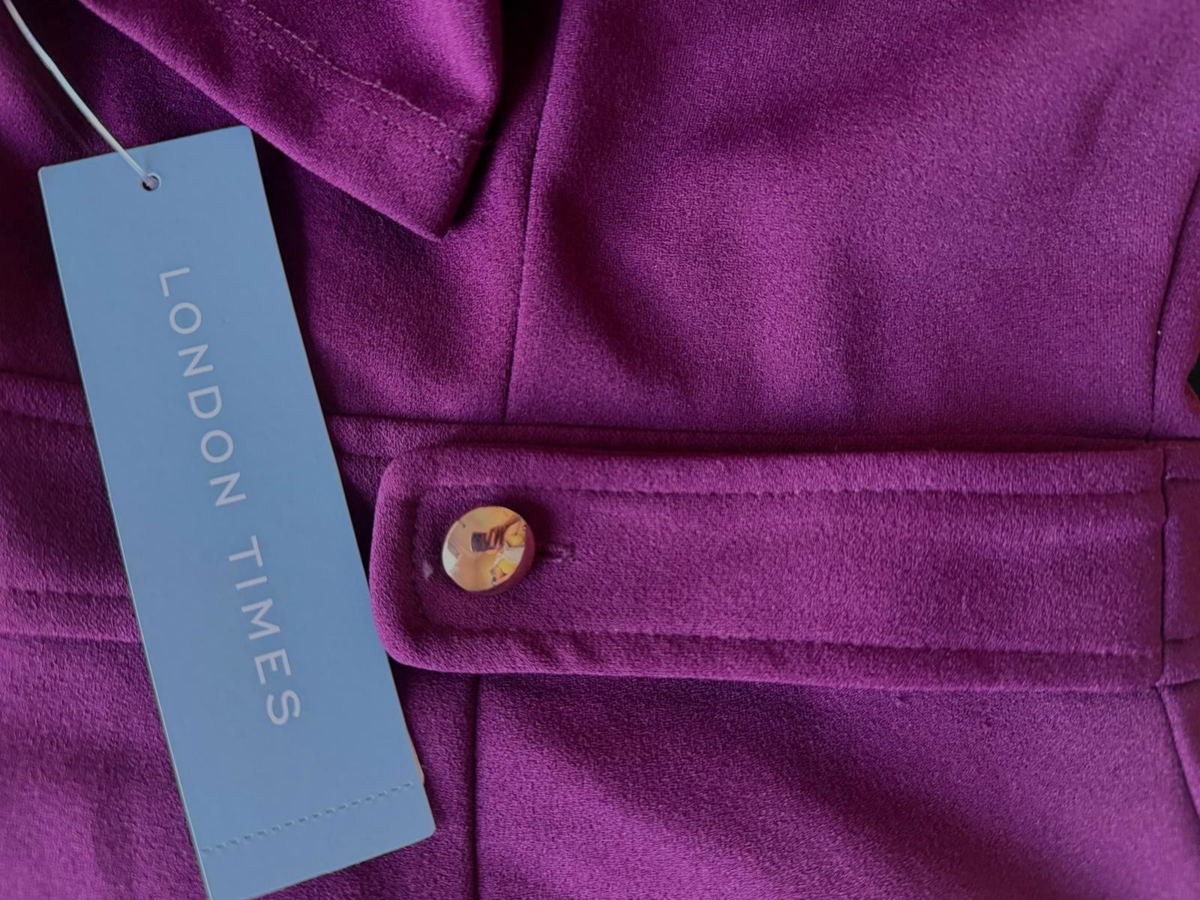 London Times Office Sheath Dress with Button Waist Detail Size: 4 Mulberry $99