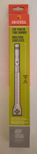 Universal Top-Ported Tube Burner fits most brand grills. Expands from 14" to 20". Gas ports on top of tube allow for longer burner life. Stainless steel construction. Parts included for installation