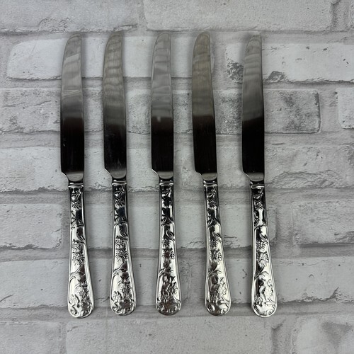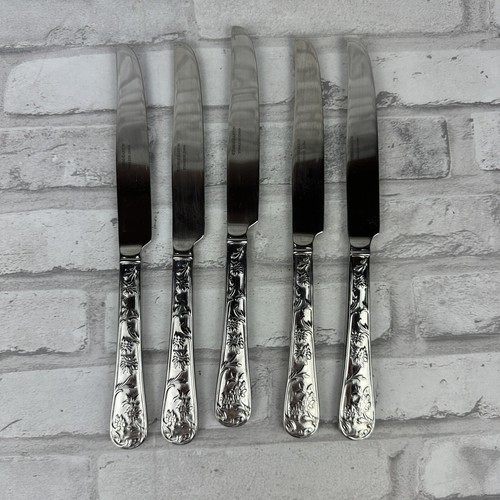 Reed & Barton China Stainless Steel QUEENS GARDEN Set (5) Dinner Table Knives