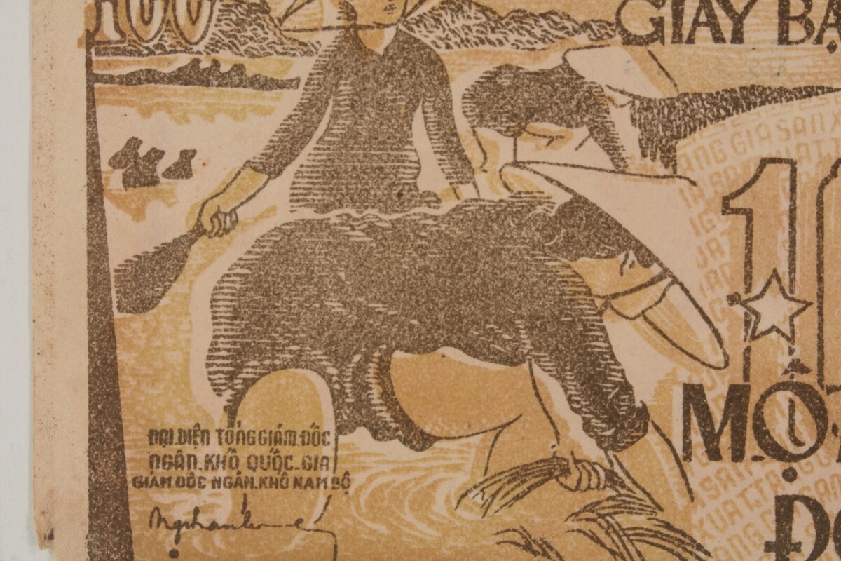 1951 Vietnam 100 dong (?) note, About Very Fine condition