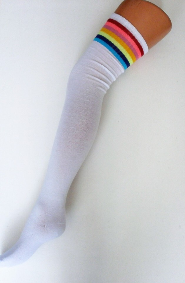 SPORTS ATHLETIC CHEERLEADER THIGH & KNEE HIGH SOCKS 3 STRIPES TUBE OVER KNEE