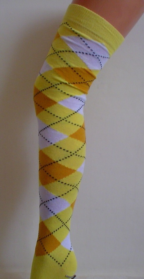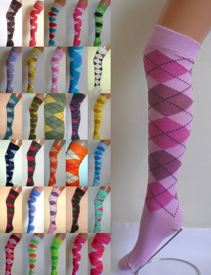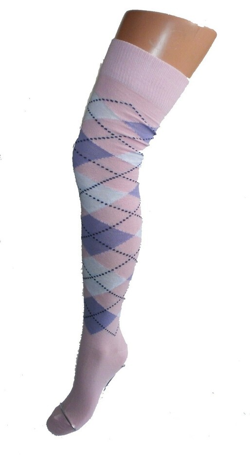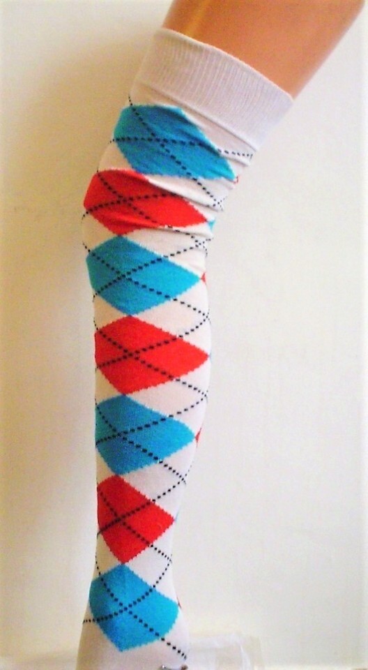ARGYLE CHECK DIAMOND OVERKNEE OVER KNEE HIGH SOCKS PUB GOLF FANCY DRESS DANCE