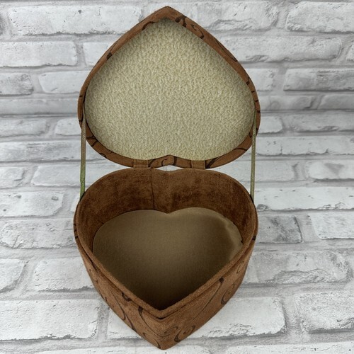 Brighton Brown Faux Suede Heart Shaped Jewelry Gift Box Silver Heart No Trays