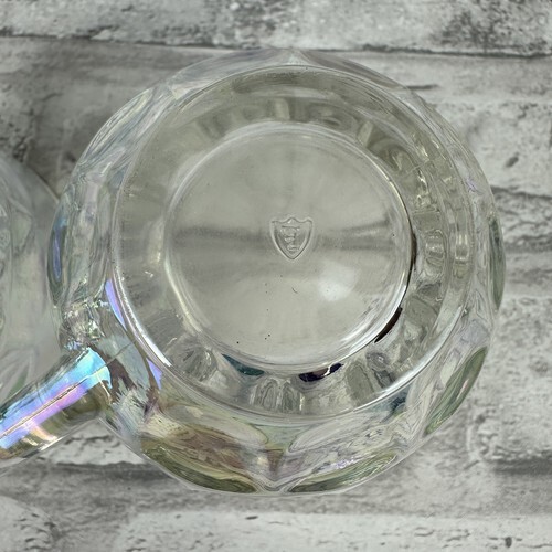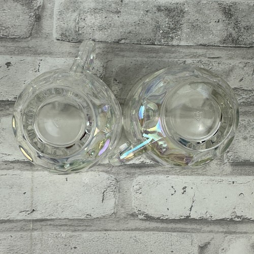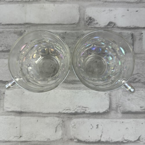 Federal Glass HoneyComb Teacup Set 2 50'S Thumbprint Carnival MCM Iridescent
