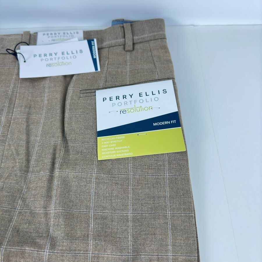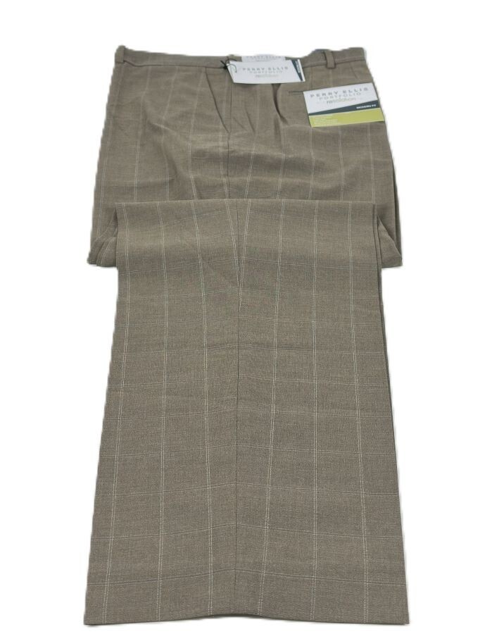 Perry Ellis Portfolio Men's Modern-Fit Resolution Dress Pants Dk Beige-40/30