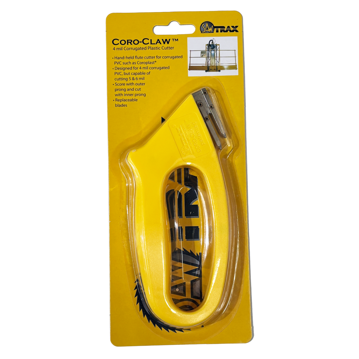 The Coro-Claw 4mm is a specialty cutting tool designed specifically for 4mm corrugated plastic sheets (such as Coroplast). Unlike box cutters or utility knives that can crush flutes, crack the plastic, or result in uneven cuts, the Coro-Claw slices cleanly between the flutes for a smooth finish?every time. It can also score 5mm and 6mm plastic sheets.