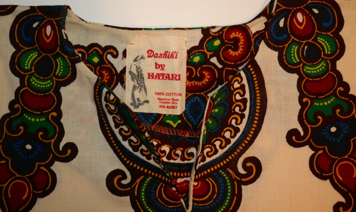 The Dashiki by Hatari Kaftan is a stylish and comfortable piece perfect for casual occasions. This measures approx. 44" from end to end and 21/5" from shoulder to bottom hem with a few small spots on the back. Made from 100% cotton, this kaftan features a round neckline, pullover closure, and a relaxed fit. The multicolor tribal print adds a unique ethnic touch to the design, making it a standout piece in your wardrobe. With its lightweight material and basic style, this kaftan is ideal for wearing in the summer or spring seasons.