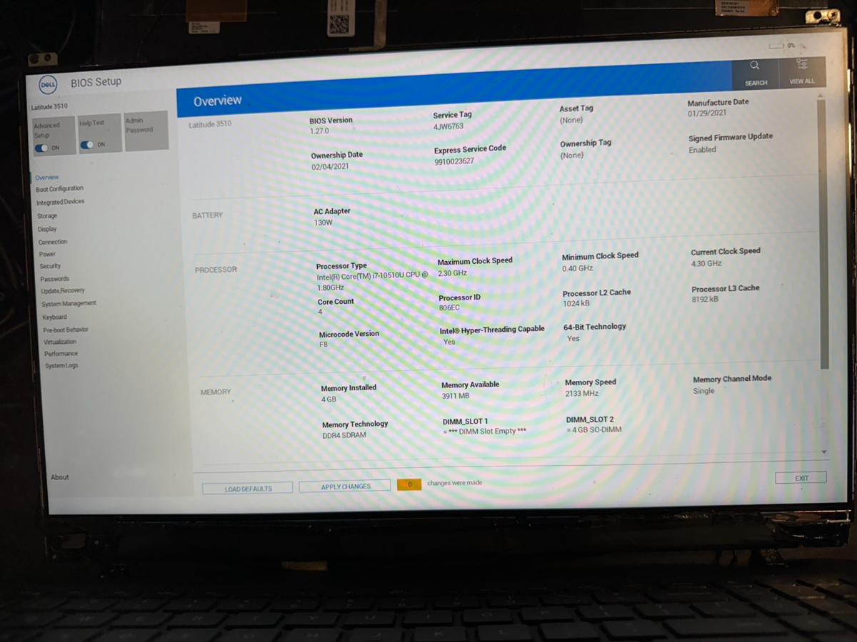 Dell Latitude 3510 i7-10510u Motherboard J6VTW