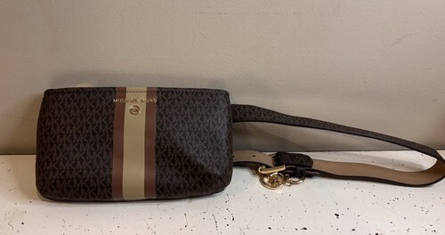 The Michael Kors fanny pack for women is a stylish and practical accessory made from brown leather. This medium-sized belt bag and fanny pack is designed specifically for women and features the signature Michael Kors brand. Perfect for on-the-go use, this fanny pack offers a convenient way to carry essentials while maintaining fashion-forward style. Ideal for hands-free mobility, this accessory is a versatile addition to any woman's wardrobe.