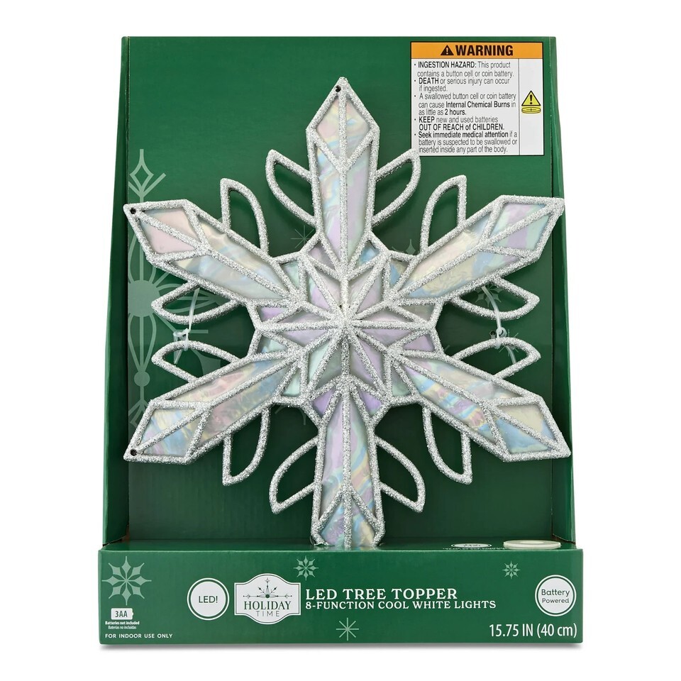 Holiday Time 15.75" LED Snowflake Christmas Tree Topper, Silver
