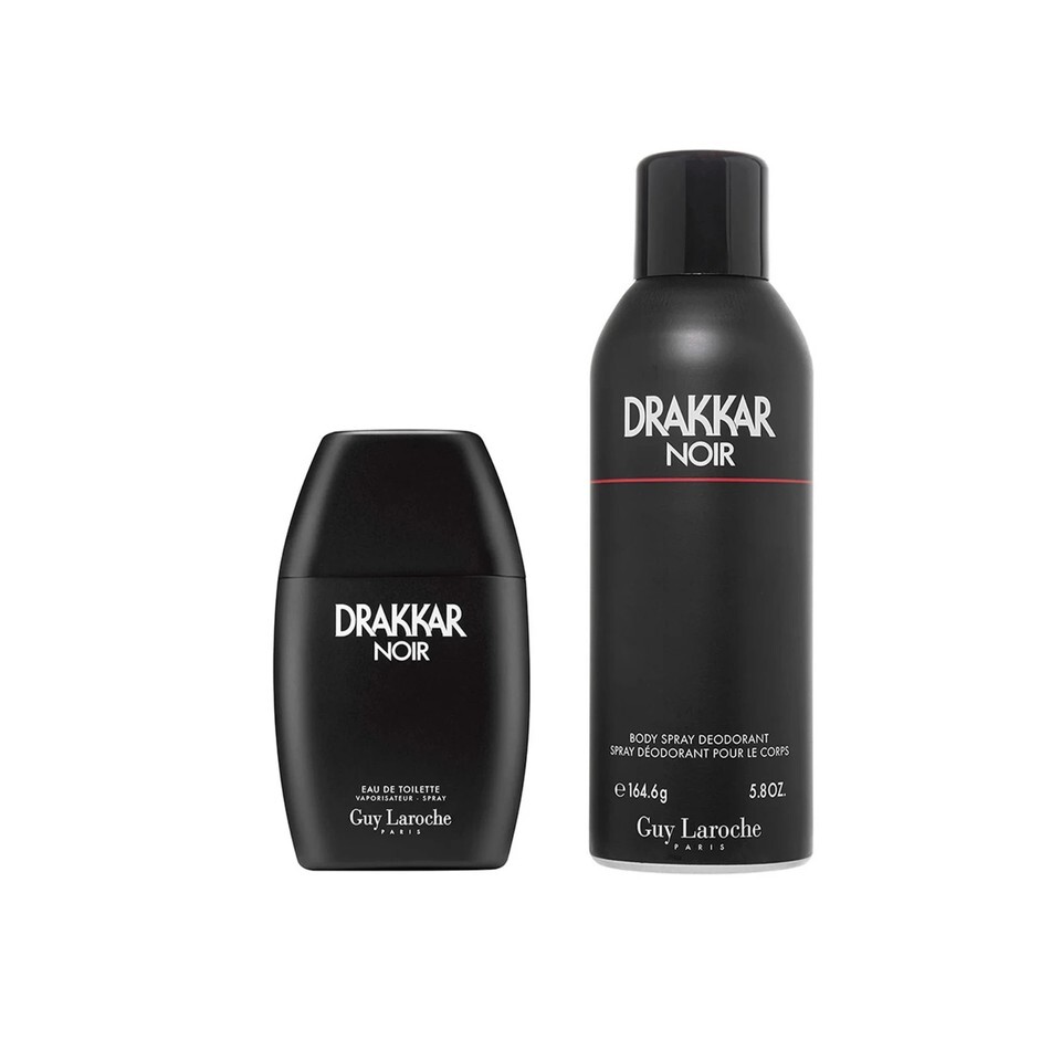 Guy Laroche Drakkar Noir Cologne Gift Set for Men is a 2 piece set that contains 1.7 oz Eau de Toilette and 5.8 oz Body Spray. Drakkar Noir is a powerful cologne for men, an explosive blend featuring stimulating lavender, lemon and mandarin orange top notes which play with a warm spicy herbaceous heart ending on a powerful woody base. A uniquely seductive scent for a heady impression of attraction, menace, and power. The Drakkar man is in essence a man of strength who can count on his natural seduction. Since 1982, Drakkar Noir has conquered the world and belongs to the great legends of perfumery.