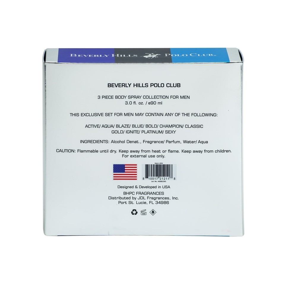 Beverly Hills Polo Club Men's Body Spray Collection 3 Piece Gift Set