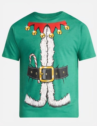 Holiday Time Men's Christmas Elf Cosplay Little Helper Suit Graphic Tee Green XS