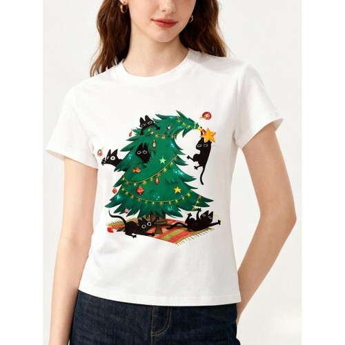 Get into the holiday spirit with this Women's Christmas Graphic Tee from Holiday Time. This festive favorite features a playful design that's perfect for spreading cheer. Crafted from a soft, breathable fabric, it's comfortable enough for all your seasonal celebrations, from tree decorating to gift wrapping. Pair it with your favorite jeans or cozy leggings for an effortless holiday look that's merry and bright!