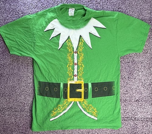 Holiday Time Men's Christmas Elf Cosplay Little Helper Suit Graphic Tee Green XL