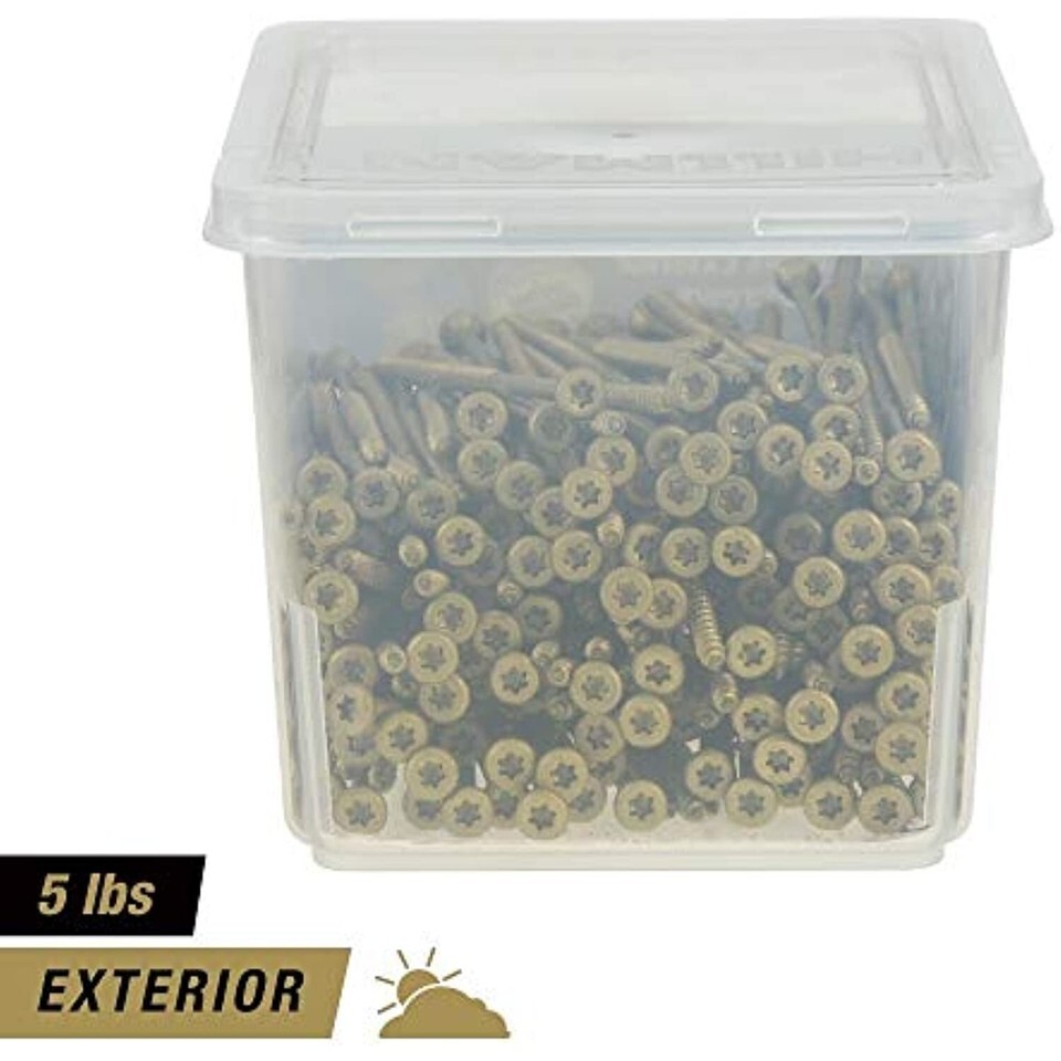 Power Pro 48616 Wood Screws, #10 x 4-1/2", Premium Outdoor Deck Screws, Rust Resistant, Epoxy Coated Bronze, 5lb Tub, 237 pcs