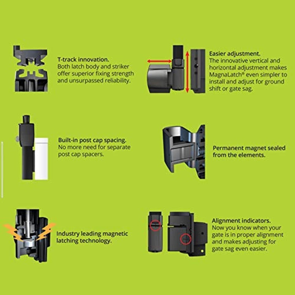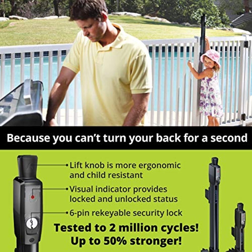 Magnetic Gate Latch With Top Pull, Can Be Used For Pool Child Safety Gate Latch, Key Lockable 6 Pin Rekeyable Security Lock, Vertical Horizontal Alignment Indicators For Easier Install Adjustment, T-Track Innovation To Offer Superior Fixing Strength Industry Leading Magnetic Latching Technology, Ergonomic Child Resistant Lift Knob, Offers Ultra-Strong Polymers Stainless Steel Components That Never Rust, Bind Or Stain, Clear Pack, Lifetime Warranty.