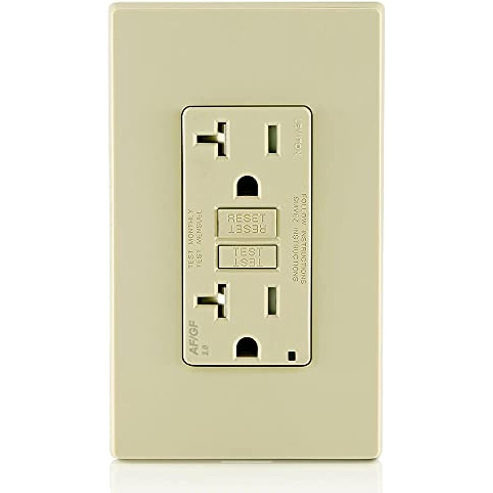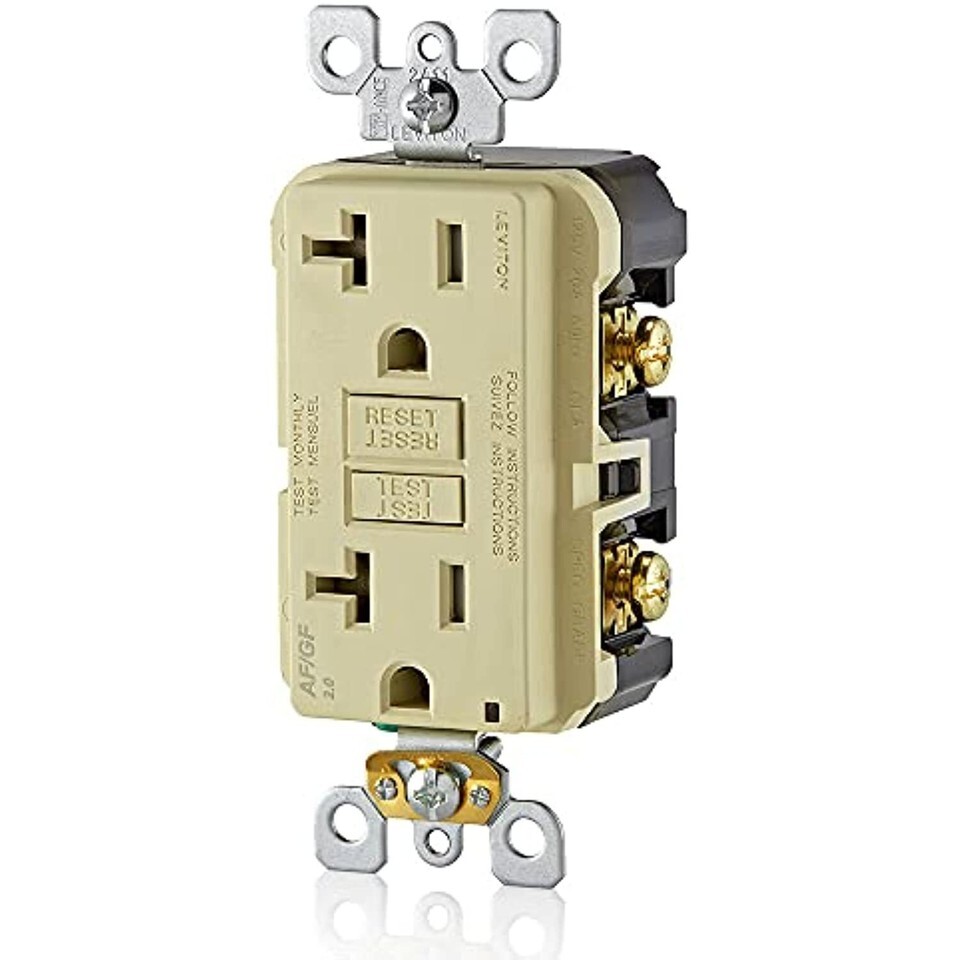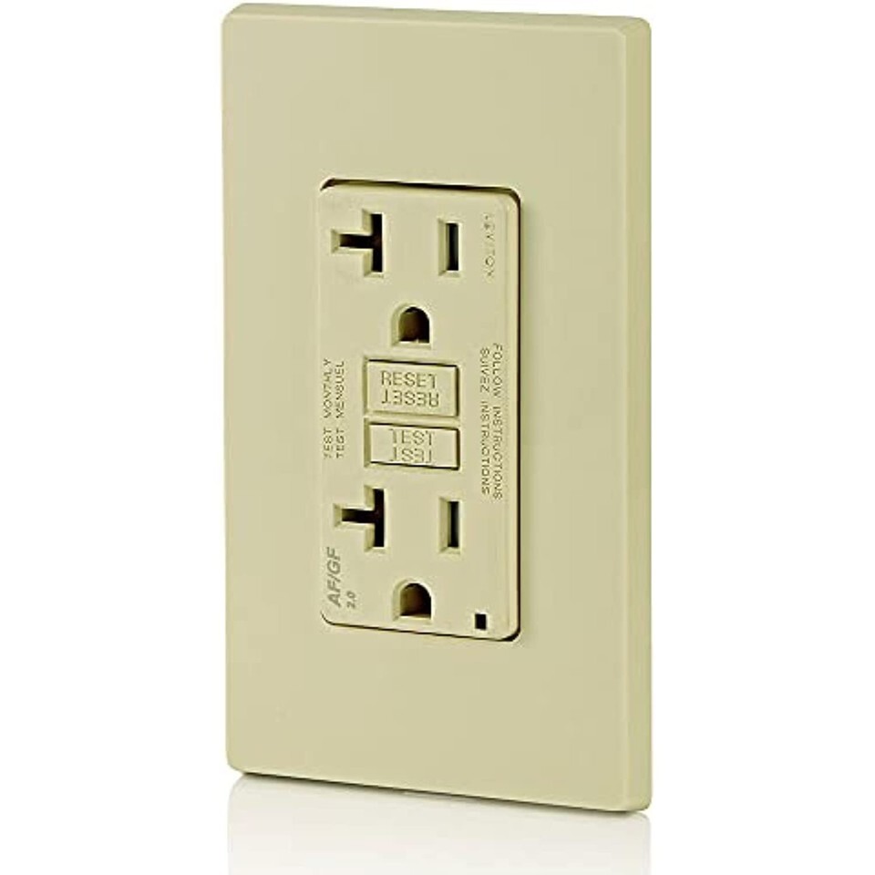 Leviton AGTR2-I SmartlockPro Dual Function AFCI/GFCI Receptacle, Wallplate Included, 20 Amp/125V, Ivory