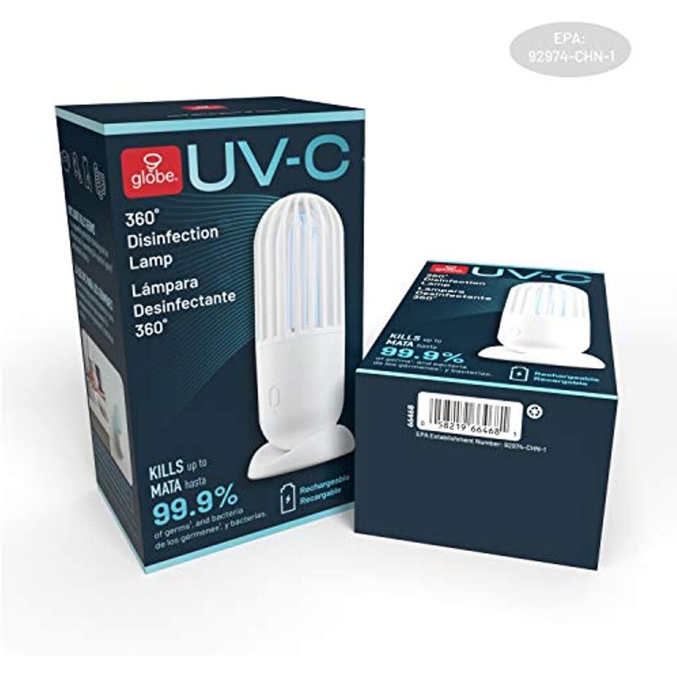 Globe UV-C Light Disinfecting 360-Degree Portable Rechargeable Lamp, White, Micro USB Cable Included