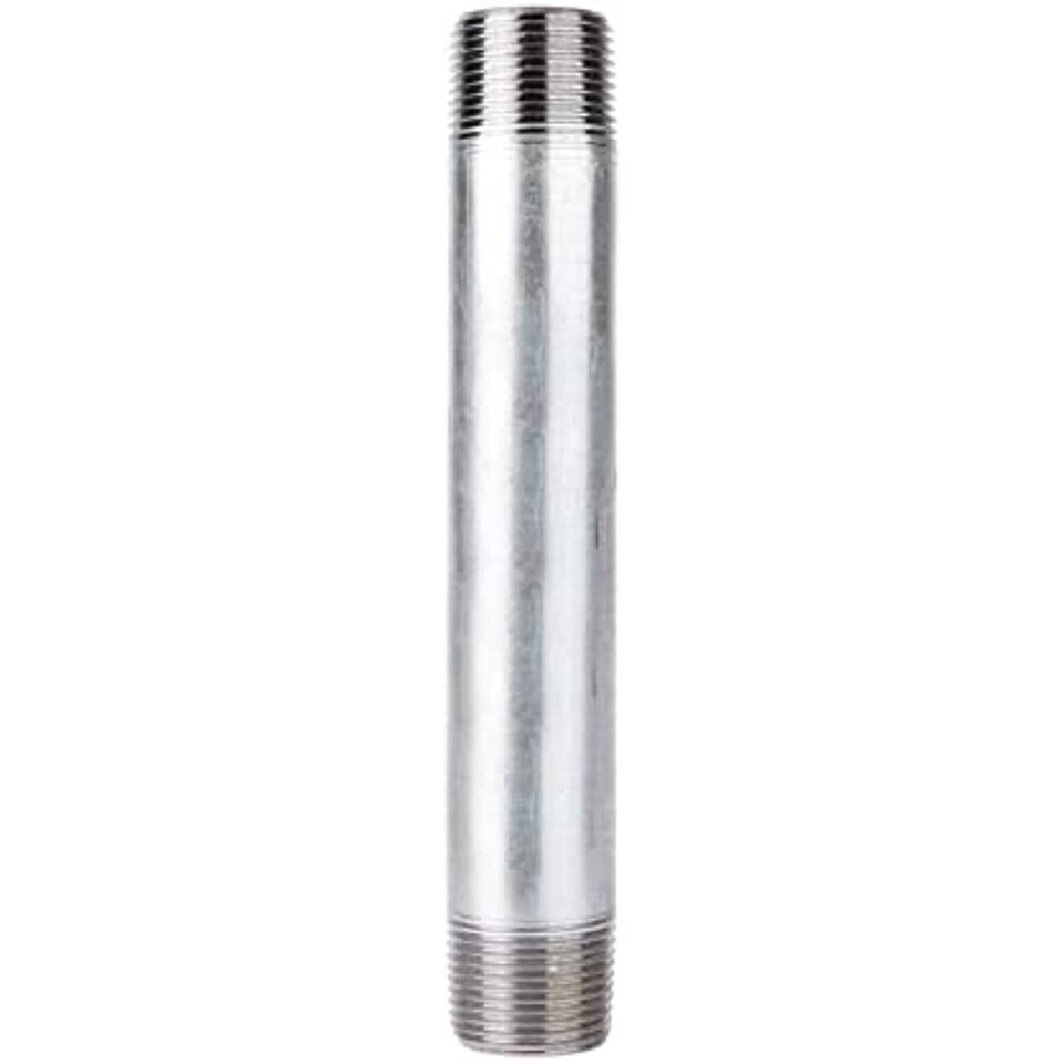 Brand Name: B K; End 1 Diameter: 3 in.; End 1 Type: MPT; End 2 Diameter: 3 in.; End 2 Type: MPT; Finish: Galvanized; Material: Steel; Length: 8 in.; Product Type: Pipe Nipple; Fits For: For Water and Waste Applications; Color Family: Silver; Number in Package: 1; Diameter: 3 in.; Compatible Pipe Material: Iron; Packaging Type: Pack; Steel Pipe Type: Galvanized; Pipe Length: 8 in.